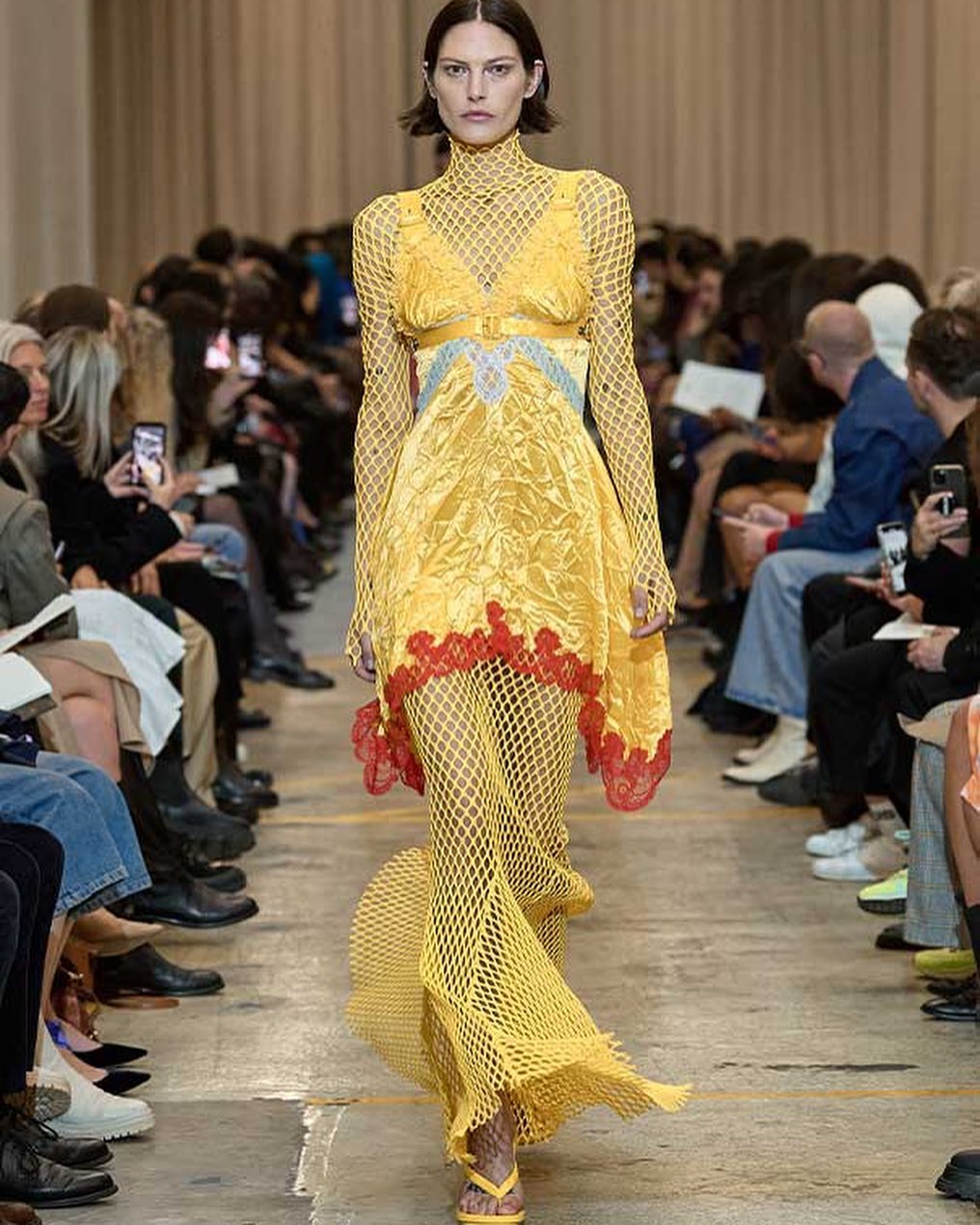 In a season of overtly sexy clothes so far, @riccardotisci17 reminded everyone that he is the legitimate heir to the Gianni Versace or Azzedine Alaïa thrones. The key designers who invented body-con and took sexy clothes to couture levels. Outfits that make traffic stop. Was it Tisci’s swan song at Burberry? It felt like it but in true style of a big designer, this show was one of his very best for the British heritage brand. Tisci started in March 2018 in a big industrial outer-London space and he found another big hall for this collection where the audience was sat around a classical orchestra in the middle.