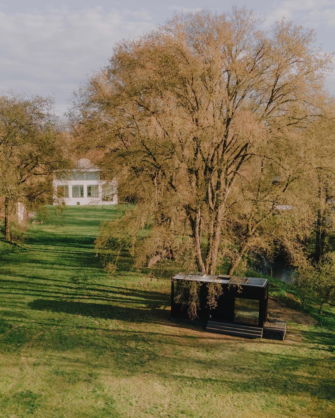 The cabin, situated just at the edge of the sprawling lawn turned art venue, hosts up to three adults and comes with free entry to the exhibition – and the shortest way home from the after party!