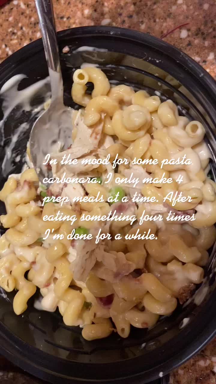 Pasta carbonara easy meal prep with leftover rotisserie chicken#yummyfood #mealprep #ifitfitsyourmacros #flexibledieting #momswholift #fittiktokmoms