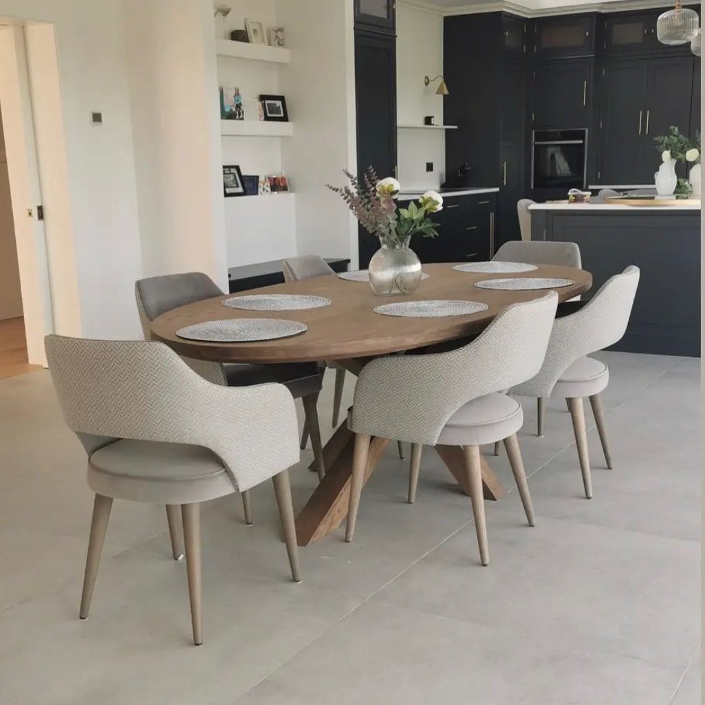 Just Wow! What an incredible dining space. Our stunning Oval barker table finished perfectly with our Orbit custom chairs. The perfect combination. Get the look now for less during our Summer sale ☀️