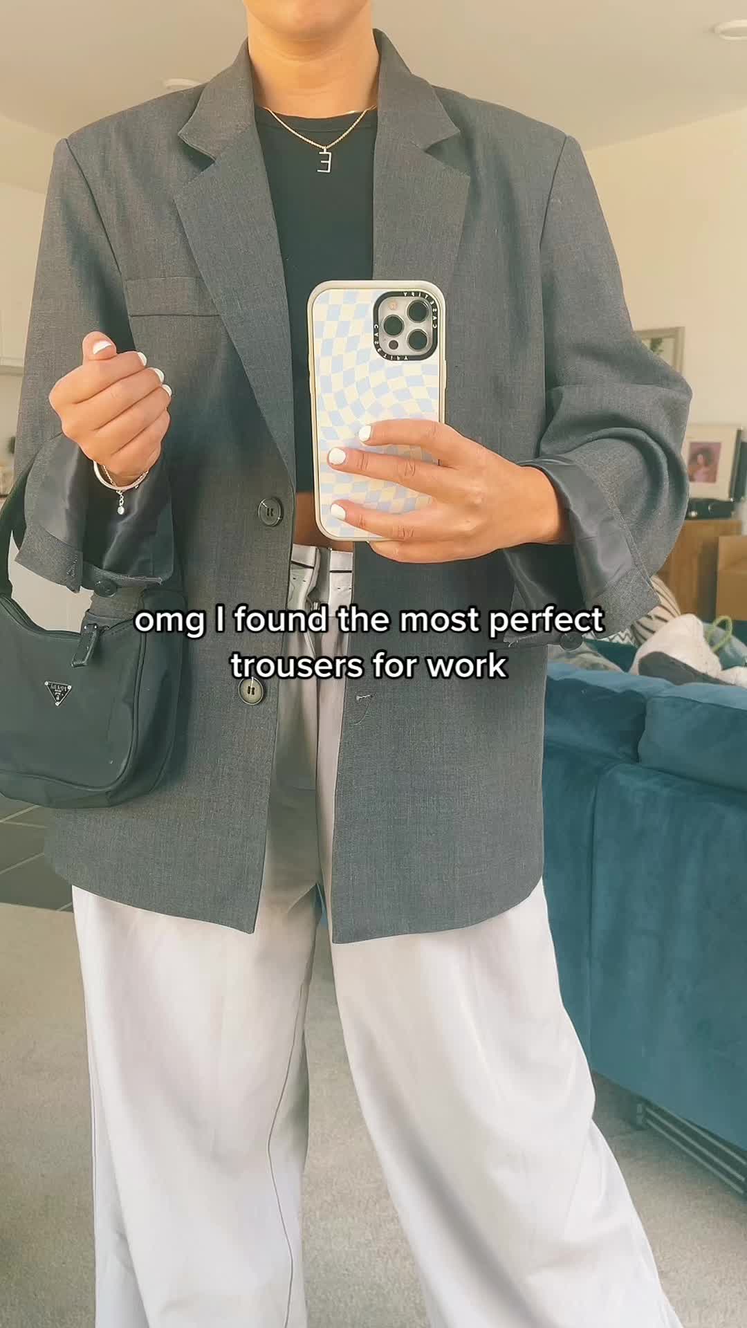 obsessed with the fit of these #trousers #worktrousers #schooltrousers #petitetrousers #trousersoutfit #baggytrousers #oversizedblazer #matildadjerfstyle