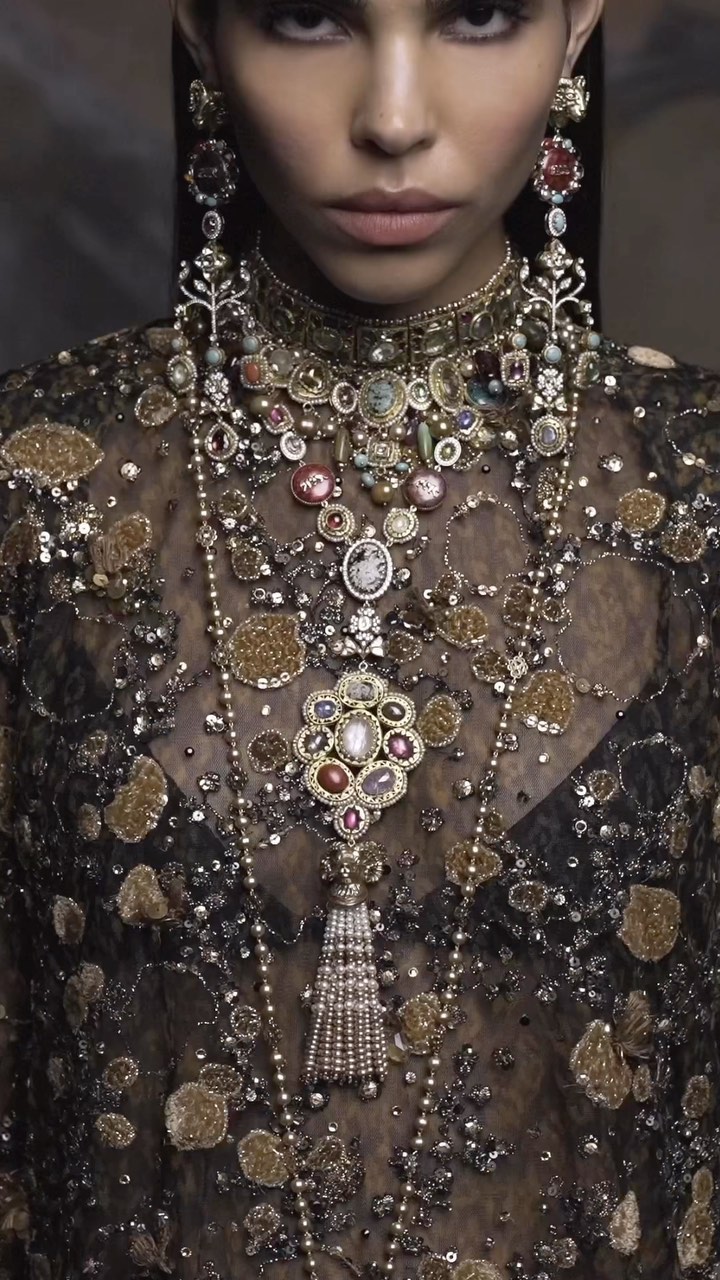 Sabyasachi presents Bengal Byzantine Broadway, an exclusive collection of high jewellery for Bergdorf Goodman. From deconstructed Maharani necklaces paired with fine hand-printed velvets, enamelled Grecian medallions alongside tropical charms, and the finest of gemstones set in gold—the collection is a cross-cultural celebration bringing together the master craftsmanship of Bengal, the gilded Byzantine magnificence and Broadway’s theatrical power. It revels in the exuberant and rebellious, even as it remains grounded in India’s heritage, art and craft.