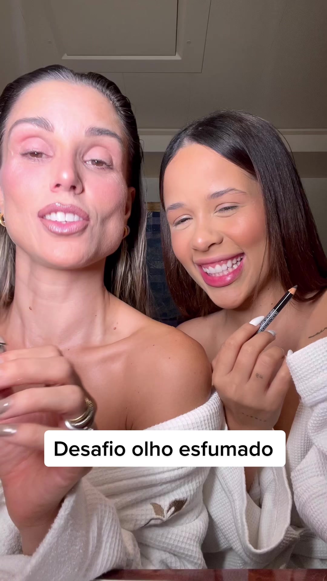 #desafio Olho esfumado na base do esfregão VIDEO COMPLETO com participação de @@laurabrito 🫶🏼 Vi esse desafio na internet e tentei fazer mas acho que precisamos treinar mais 😂 O que acharam??