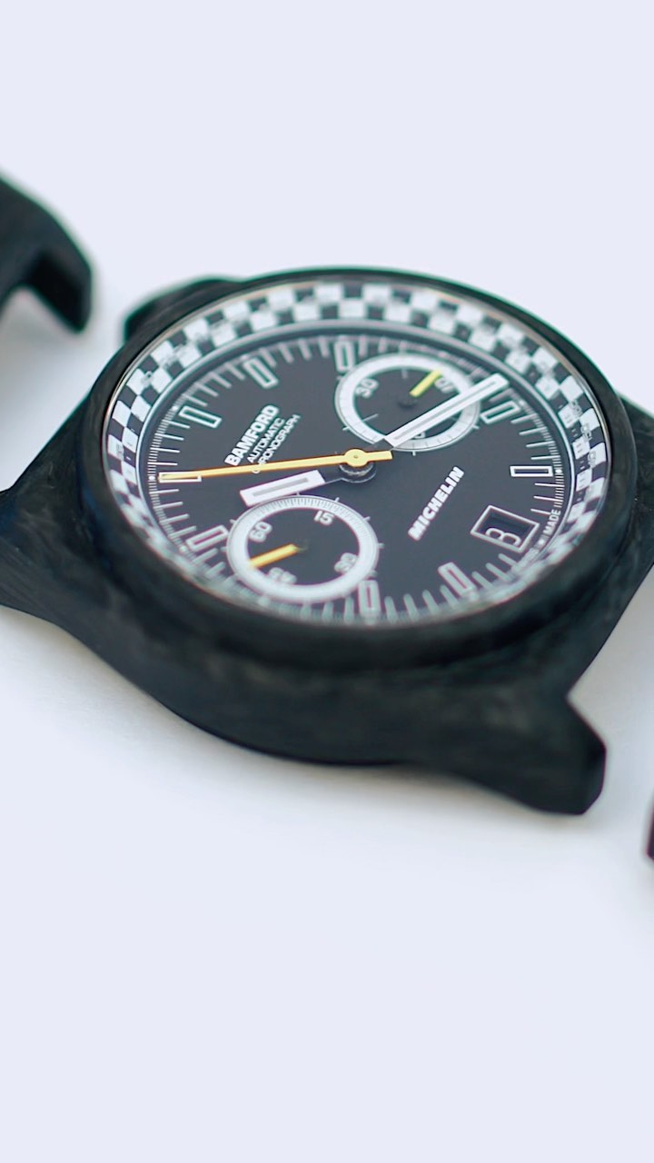 Meet our limited edition collaboration with @bamfordwatchdepartment - a forged carbon fibre ‘Monopusher’ watch, featuring a strap made from MICHELIN Pilot Sport 5 rubber and in a matching tread pattern. Engraved on the rear, with the Michelin Man. Only 133 will ever be made! You can still get one, link in our bio... 👀