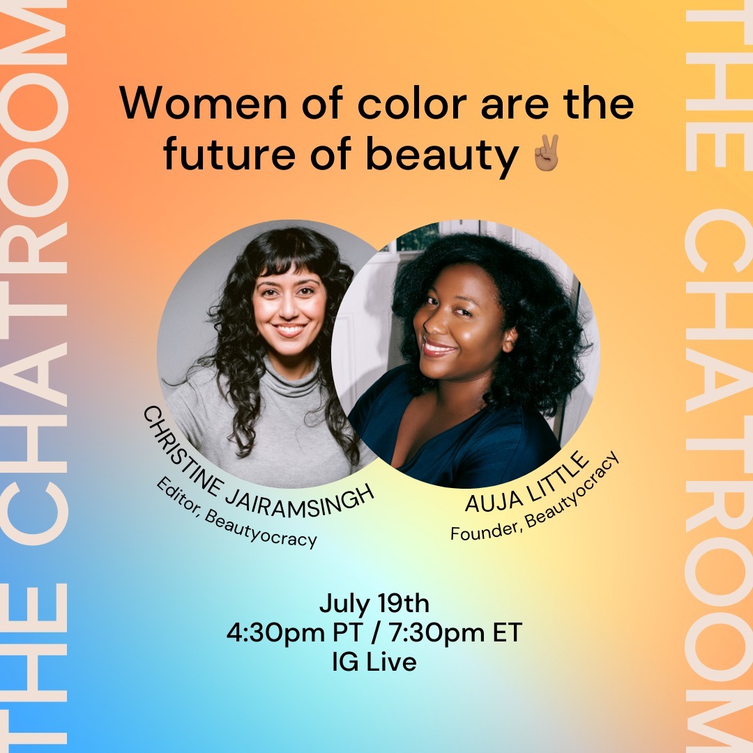 Weβre going live! π£ Join us tomorrow at 4:30 PT / 7:30 ET. Our founder, Auja, and Editor, Christine, are holding a candid convo on why women of color are the future of beauty (!) and how Beautyocracy is setting out to change the industry (nbd). π