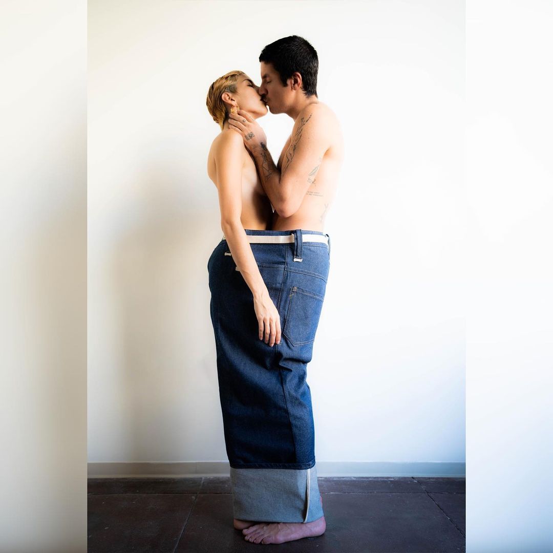 beautiful couple photoshoot from Melina and Rafael in Holland Brandt Big Pleat Jeans made adjustable at waist to be worn during weight fluctuation, shared by partners or friends and built for long term use.