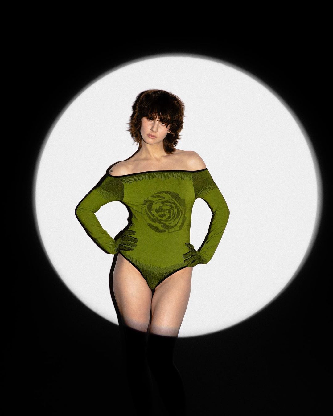 Rose gradient drop stitch bodysuit on @ginsadauskaite for @mafcsm pre-collection toile🌹 Photographer @carlos.duro Mua @a1jewel0310 Assistant @benitaguo