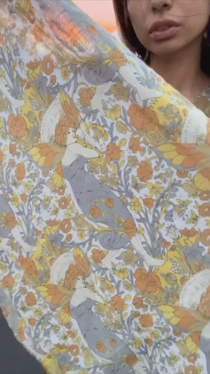 60s/70s art nouveau fairy print with matching fringe scarf coming to @hamptonflea tomorrow 08/07🧚🏼