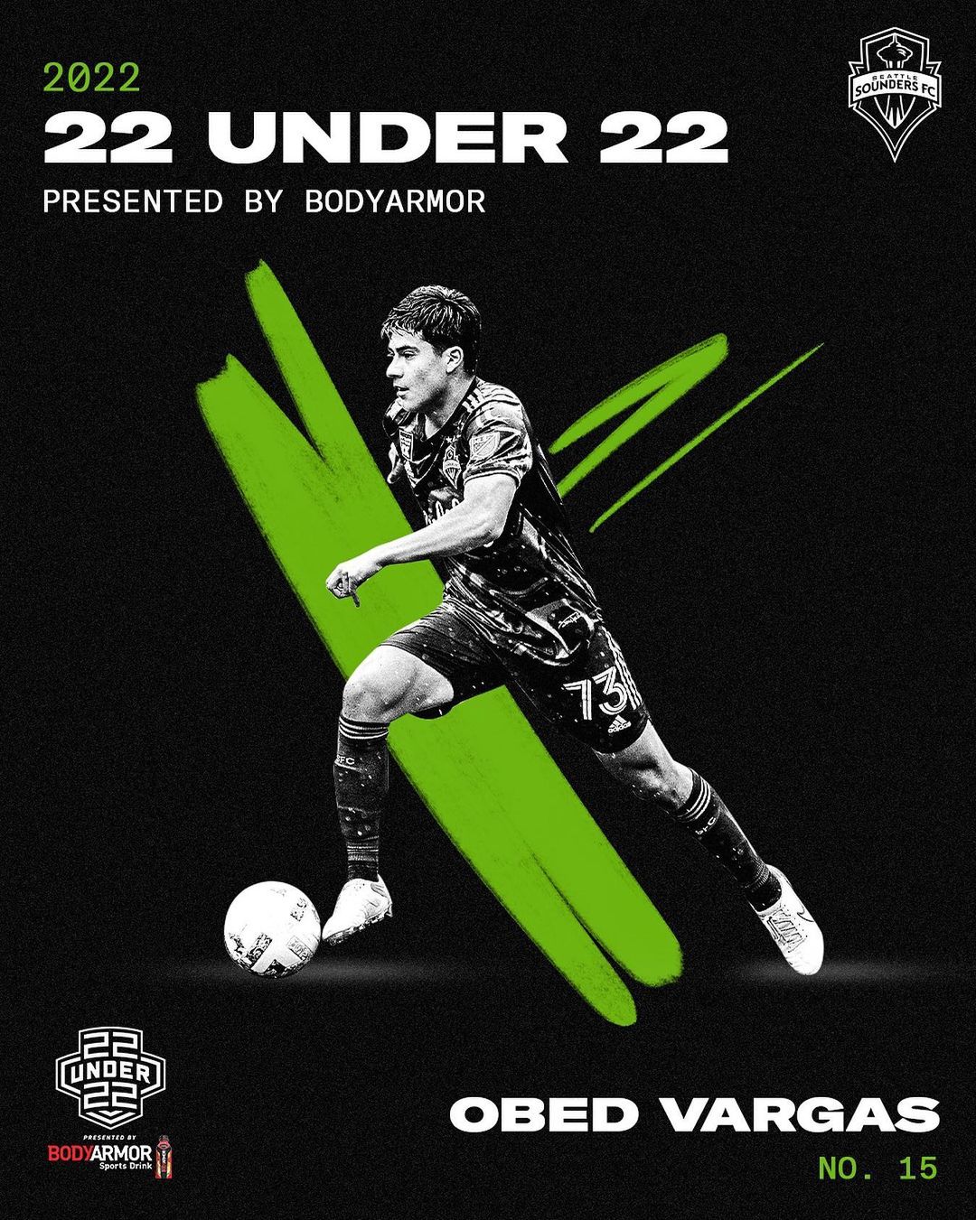 No. 1️⃣5️⃣ Obed Vargas named to MLS 22 Under 22 presented by @drinkbodyarmor. At age 17, Obed is the youngest player on the list! 👀