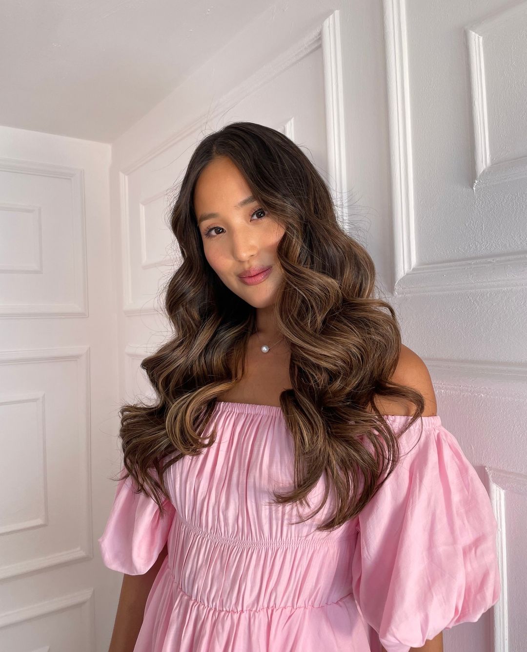 Our gorge @hehejhee wearing our 220g clip-ins in shade 'Chestnut Brown' volume created using our AU Crescendo 4-in-1 Curling Wand āØā