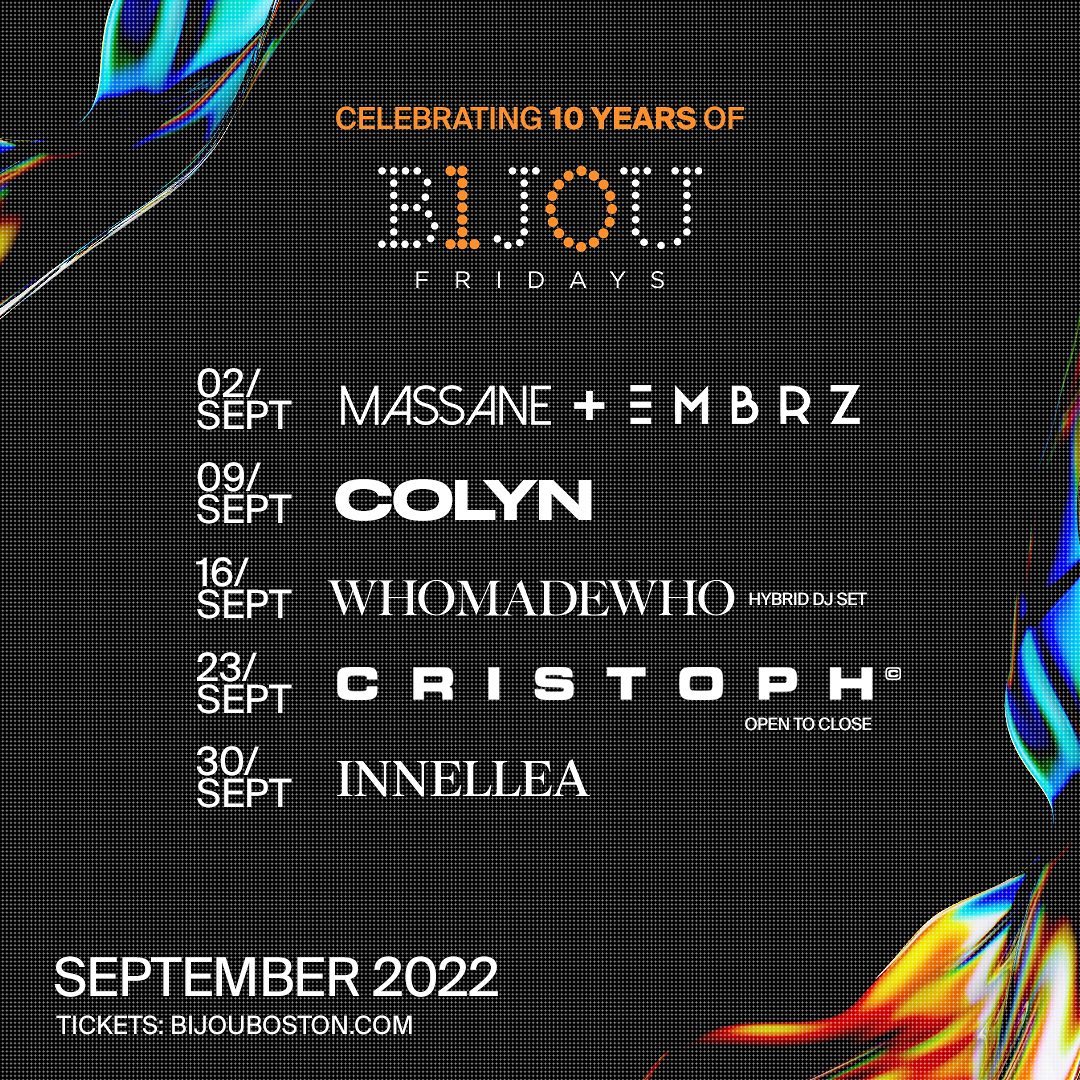 All September, we’re celebrating 10 years of Bijou Fridays! None of this would be possible without each and everyone of you who shared the dance floor with us along the way. So cheers to you and here’s to another 10 years of focusing, innovating, and surprising you with the only thing that matters in the end, GOOD MUSIC! 🔥