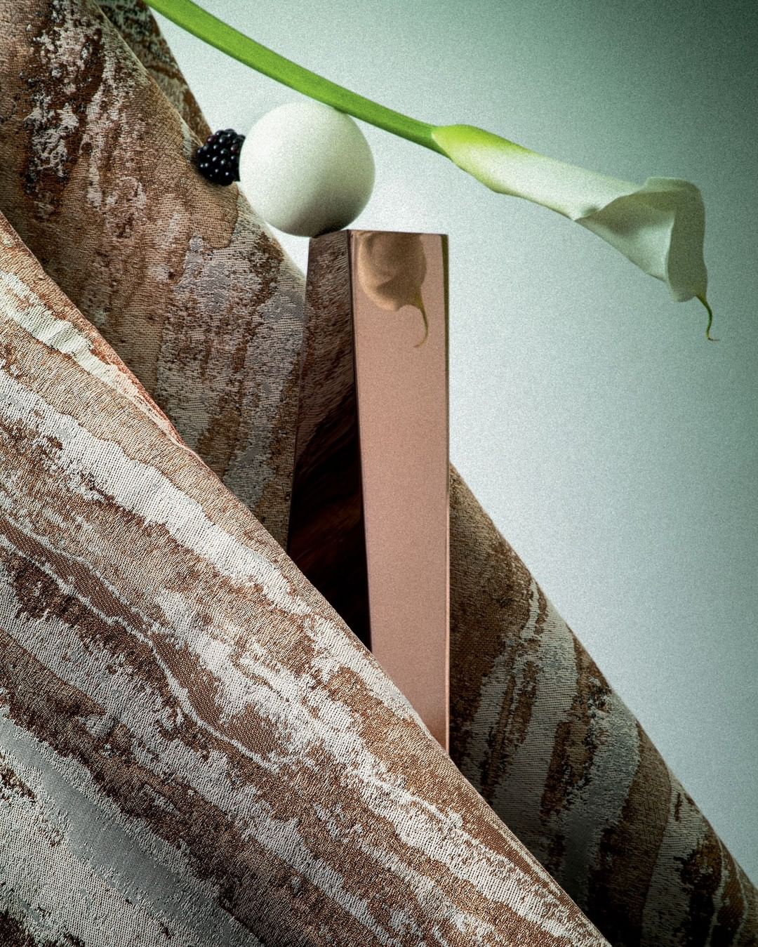 A jacquard fabric of great visual impact which belongs to “Second Firing”, a capsule collection designed by Peter Marino.
