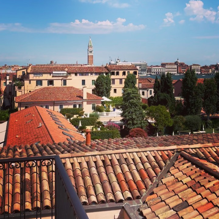Breathtaking views of La Serenissima and the Dolomite Mountains beyond - and, WAIT FOR IT, Posh and Becks enjoying a perfect al fresco brunch!!! 💎⚽️ - from our rooftop terrace at the Cipriani. @belmondhotelcipriani @belmond @vsoetrain #cipriani #venice #victoriabeckham #davidbeckham