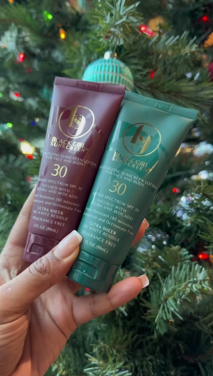 Family picture in front of the tree 🥺 Happy Holidays from the TWINS ❤️💚 Holiday Edition SPF 30 is LIVE ONLY on blackgirlsunscreen.com 💻