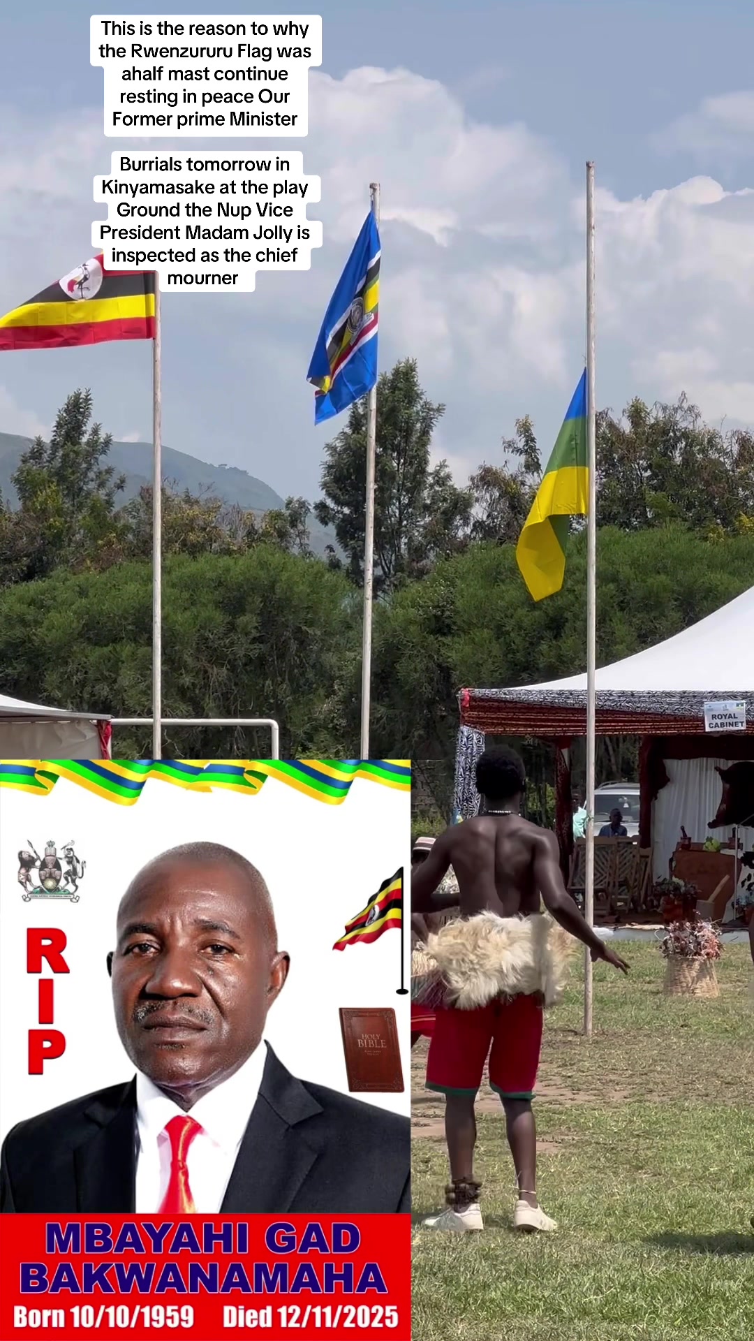 This is the reason to why the Rwenzururu Flag was ahalf mast continue resting in peace Our Former prime Minister Burrials tomorrow in Kinyamasake at the play Ground the Nup Vice President Madam Jolly is inspected as the chief mourner #kasesemusictotheworld💯😎 #rwenzoritiktokers #foryou #kasese_people_we_rock #kasese_tiktokers