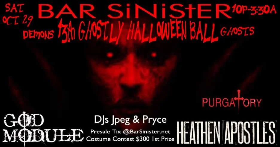 🎃SAVE THE DATE SAT OCT 29TH🎃 IS OUR 13TH ANNUAL GHOSTLY 👻 HALLOWEEN BALL~GHOSTS👻 AND DEMONS👹 EDITION!🎉🎉💀@HEATHENAPOSTLES & @GODMODULE💀 will be rocking the Sinister stage!