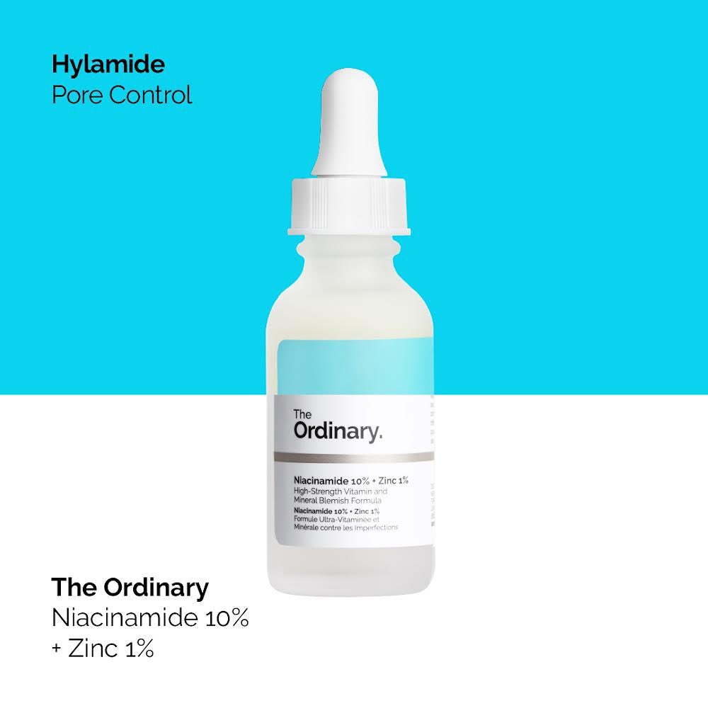 For a regimen that provides the pore-smoothing, shine reducing, and congestion fighting benefits offered by the Niacinamide and Marine ferments in Hylamide’s Pore Control, you might want to explore pairing The Ordinary Marine Hyaluronics with Niacinamide 10% + Zinc 1%.