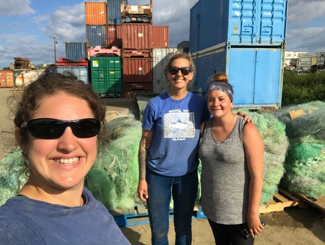 Final tally in Naknek was 17 bales and a little over 5,000 lbs of web collected. We can’t wait to multiply that by 10 hopefully when we get back! Check out our updated story for the whole adventure. #recycling #commercialfishing #ladybosses #plastic #BristolBay #salmon #Alaska #TeamworkMakesTheDreamWork @grundens #containers #fishingnets