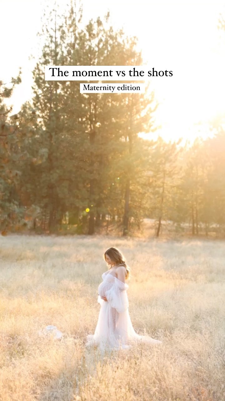 The moment vs the shots: maternity edition ... thank you @wearebeautylo for trusting me to capture this magical time in your life I adore you ... gown: @saltgowns #gownrental #maternity #goldenhour #bts #maternityphotography #maternityshoot #gownrentals #gowns #spokanewashington #washington #montanaphotographer