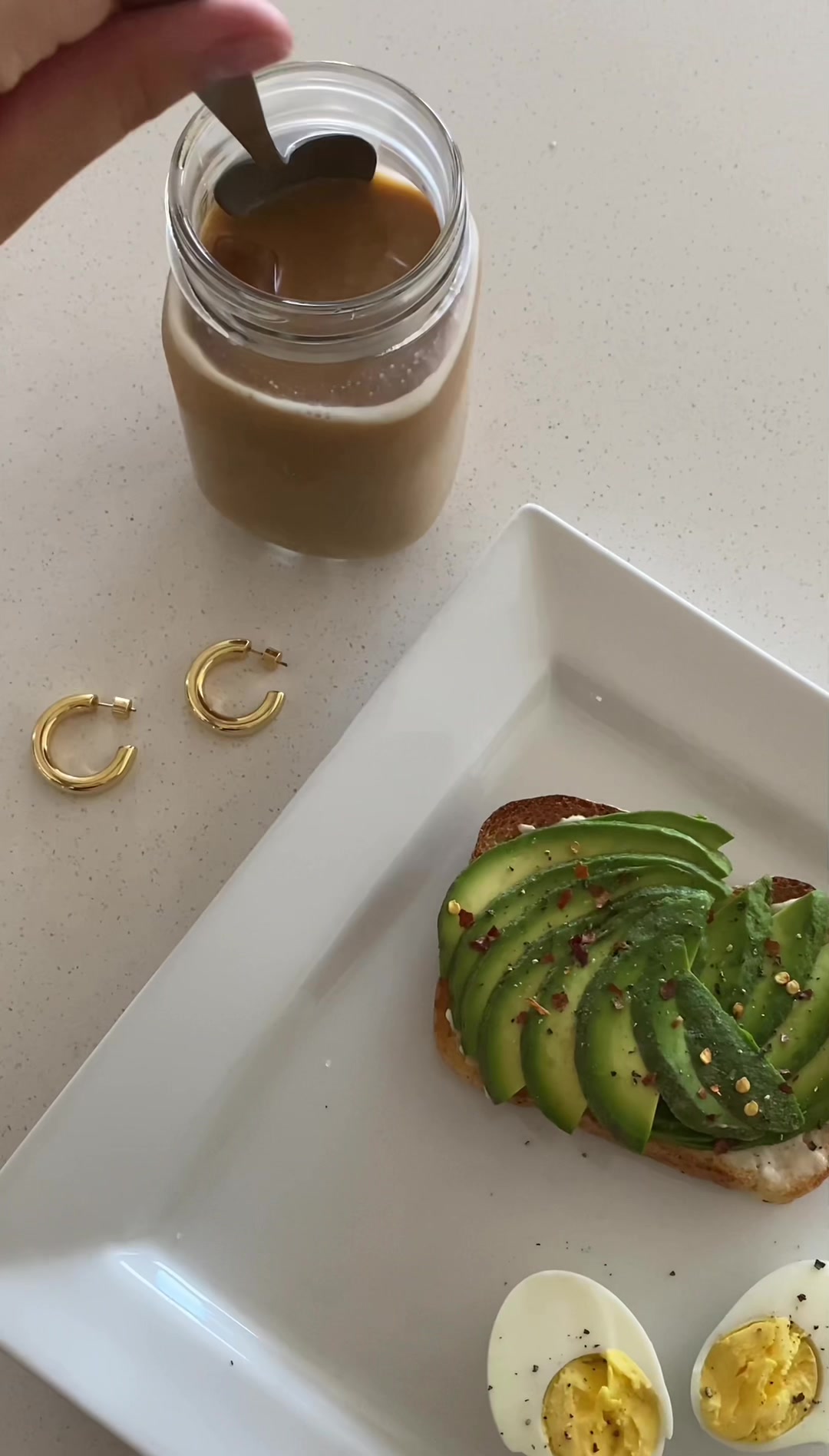 Breakfast with our favourite hoops ✨🥑🫶🏼 #morningvlog #goldhoops #vlog #breakfastroutine #jewellery #FlexEveryAngle