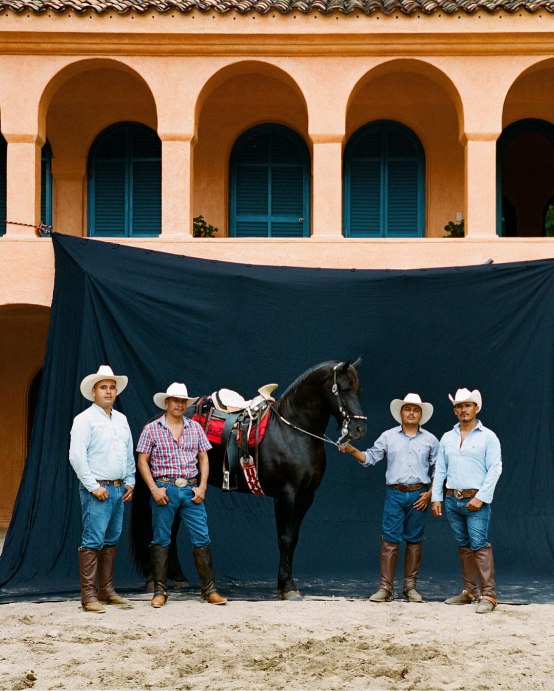The cowboys of Cuixmala, photographed with the magnificent DiamanteĢ Negro, on location at the caballerizas. Rides throughout the property embark here with one of these fine gentlemen guiding guests from zebra filled plains to the shores of Playa Cuixmala and more.