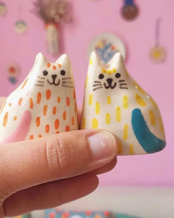 ¿No te hacen feliz estas coloridas obras de arte de cerámica? Ana Seixas (@anaseixassantos) se describe a sí misma como ilustradora, ceramista y creadora de cosas bonitas y coloridas y no podríamos estar más de acuerdo. Echa un vistazo a su perfil de Instagram para una dosis extra de buen humor.