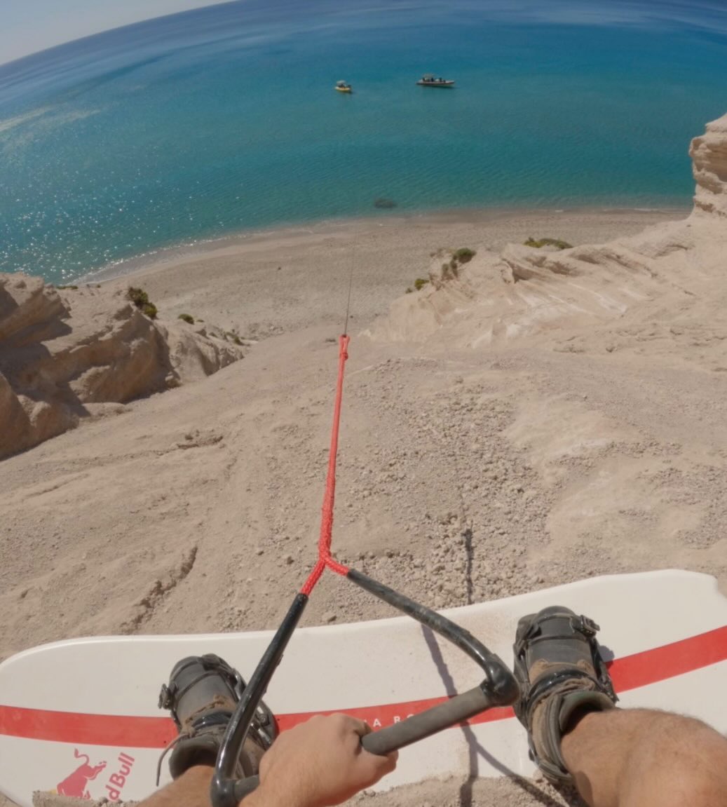 This was the first proper attempt on this vertical sand slide for our project in Mylos 🇬🇷 The slide was really steep, about 40 degrees vertical and this type of sand can be dangerous if it comes in contact with your eyes. Also, all these small rocks would get into my boots and I would almost bleed from inside. 😅 An other really challenging thing was to keep the same speed with the winch. It was the first location we shot on so I was also a bit nervous to perform. You can watch the BTS video on the link in my bio in case you have missed it!