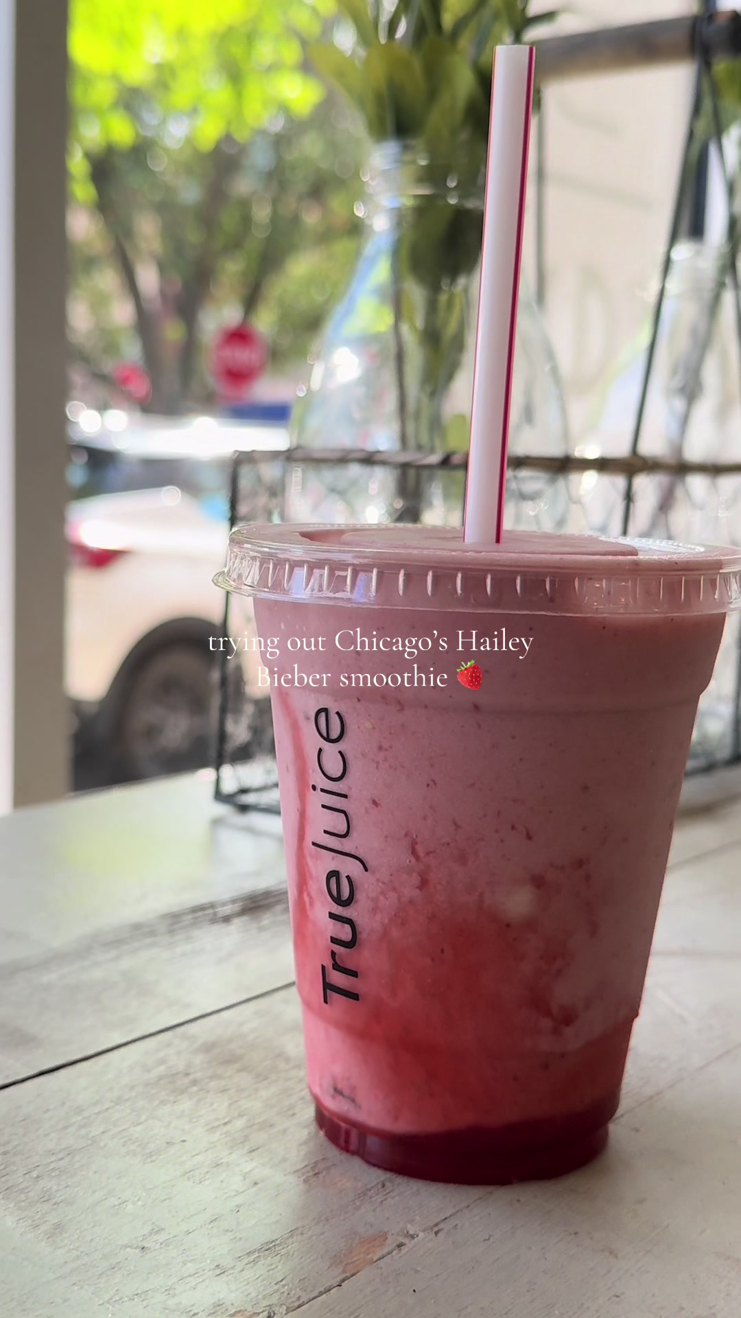 It was SO delicious, definitely up there in my top charts for fav smoothies 🍓🍰 #smoothie #chicago #haileybieber #haileybiebersmoothie #winnetka