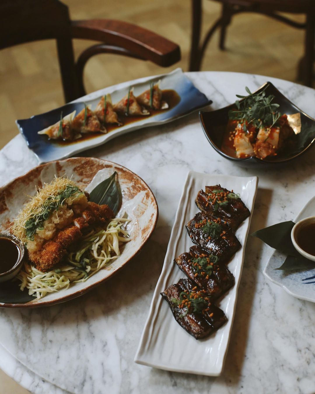 Kaia’s newest specials: miso aubergine, wagyu gyoza, pork katsu, kimchi salad and yuzu corn... #TheNed