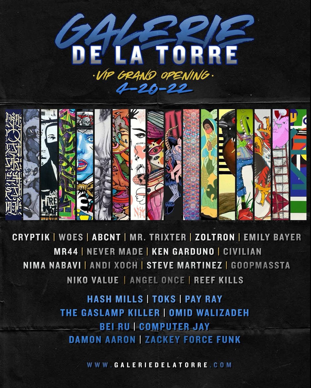 Blessings Family come have a moment with us at the #Grand #Opening of @galeriedelatorre TOMORROW 04/20 from 3pm to 11pm .... Kids and family welcomed from 3 to 6 .... We hope to see you all there .... Sending you all love and light 🙏🏽