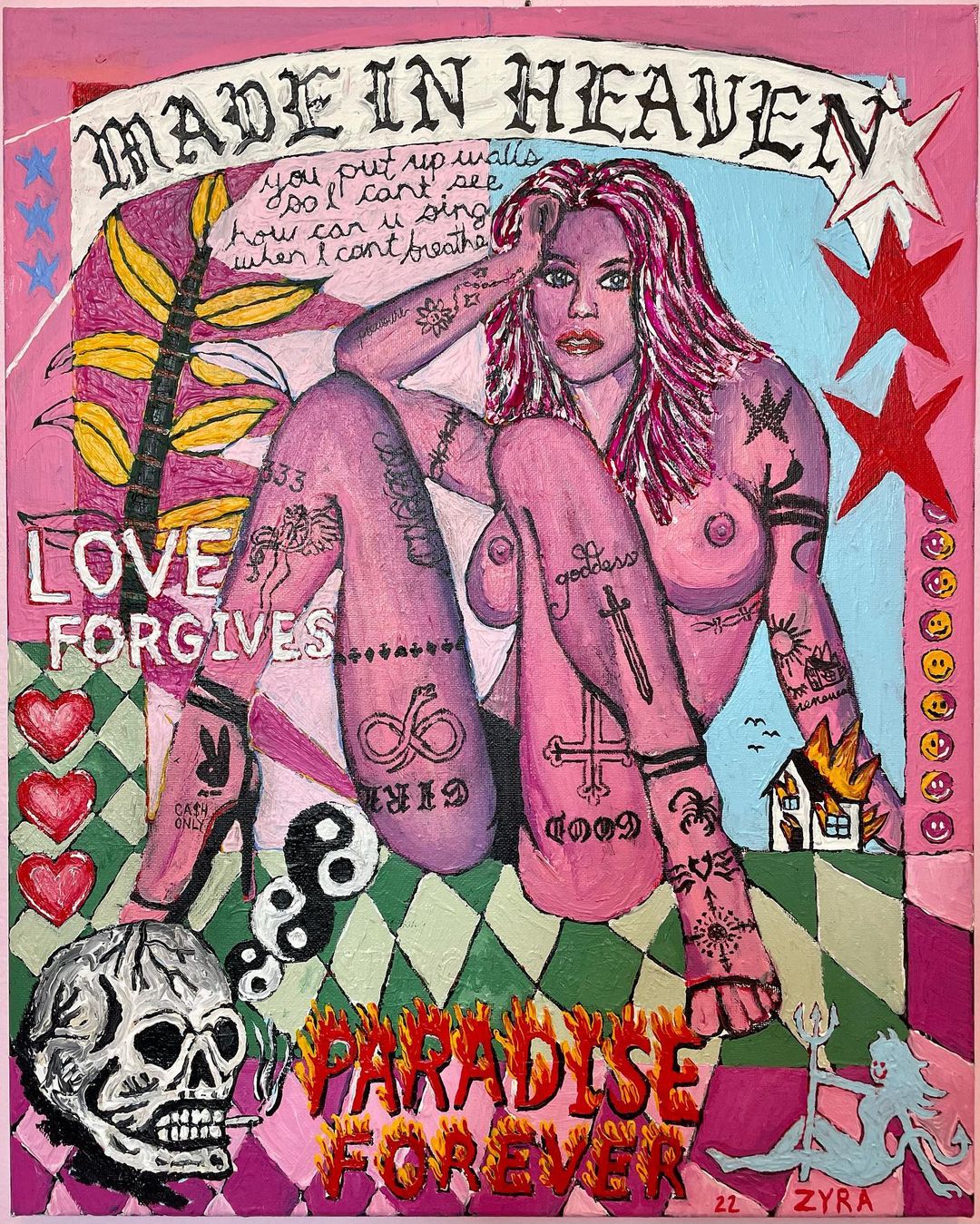 #zyrawest #zyraart #acrylicpainting #outsiderart #folkart #collage #naiveart #surrealism #transgirl #transartist #trans #transisbeautiful #transpride #queerart #tiger #weslang #roses #dannyfox #jesus #dragon #stilllife #mementomori #sailormoon #figurativeart #yinyang #skull #bird #girlslikeus #queerartist #affirmations
