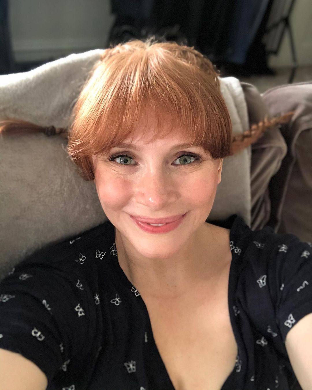 [ID: Selfies of BDH with French Braids, by Charlie Rogers, perpendicular to her head, Pippi Longstocking style]