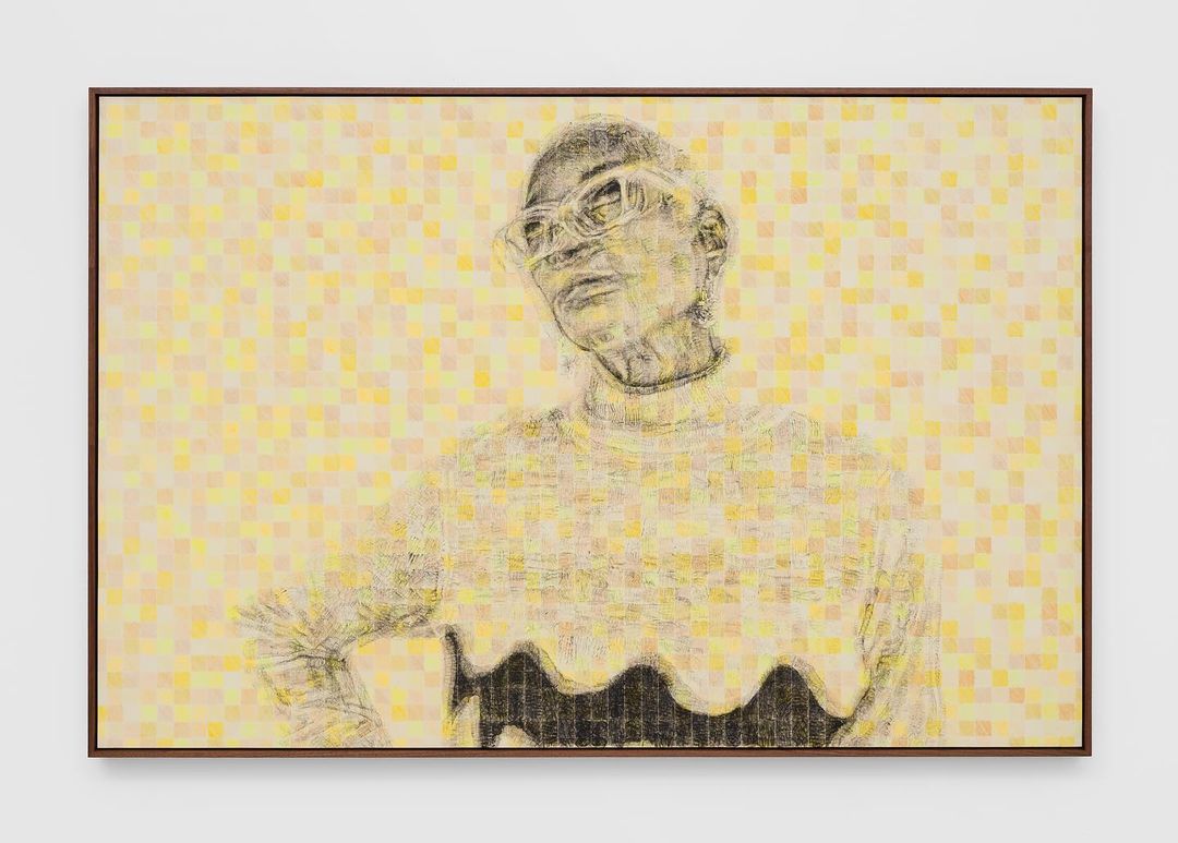 βThe Bodily Effect of a Color (Cheryl)β 2021 Oil paint applied with rubber stamp letters, with color pencil ground and debossed grid on kozo paper in artist frame 40 x 60 in ππ§‘π€π€