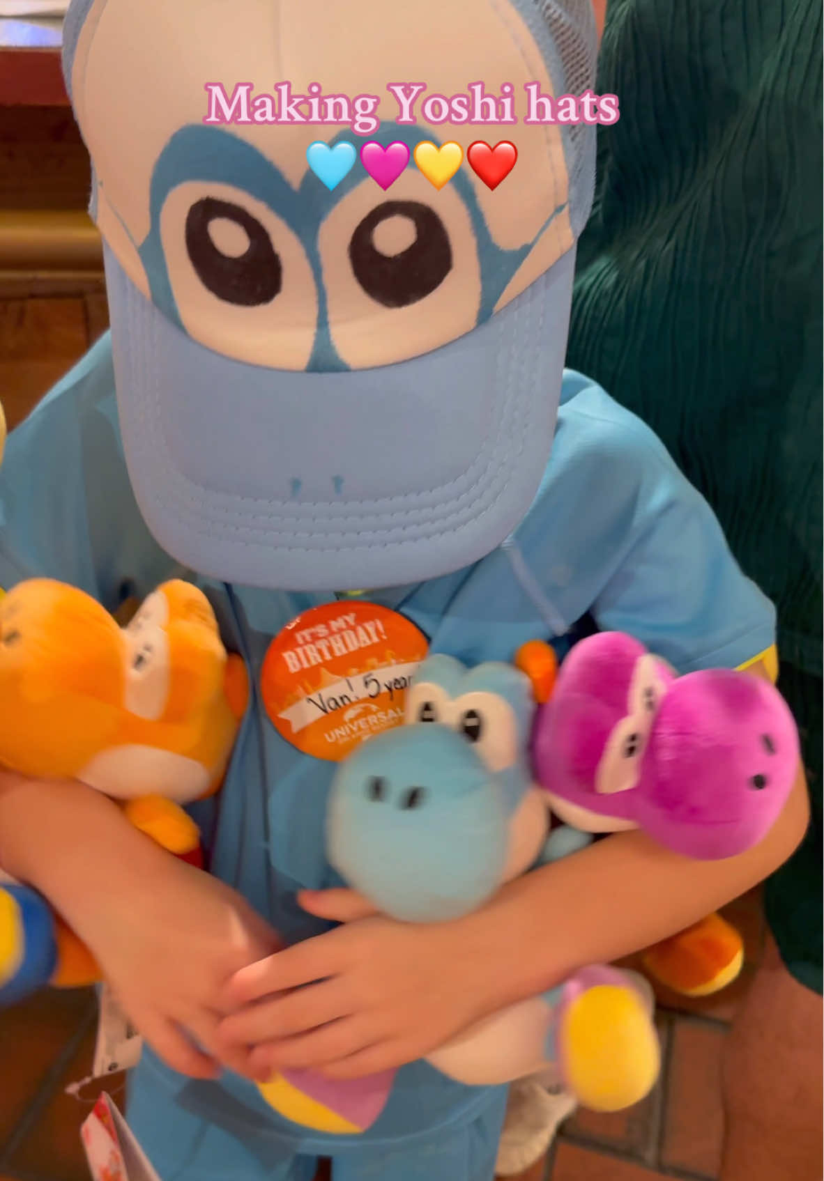 Wanted to post this version too 🤠Making yoshi hats!! #epicuniverse #nintendo #supermario #yoshi