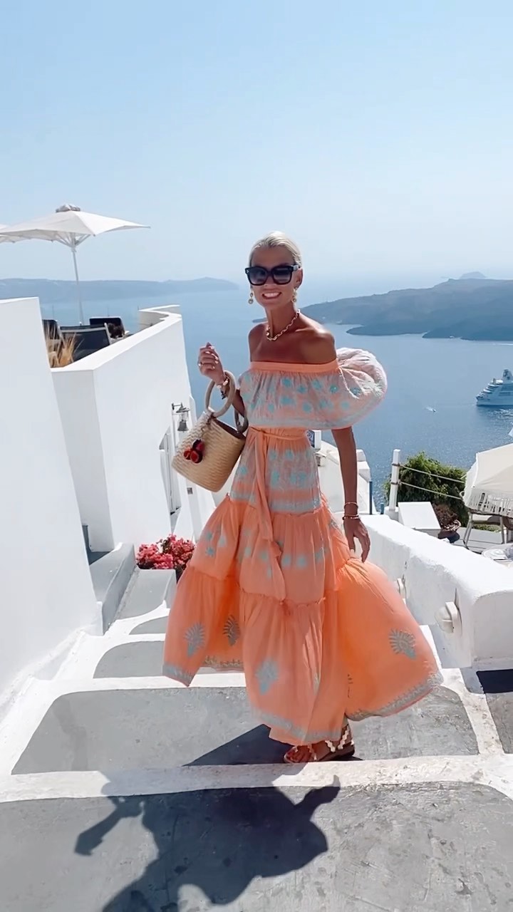 Island girl 🍑 @pranellauk dress #summerfeeling #pranella #resortwear #santorini #greekislands