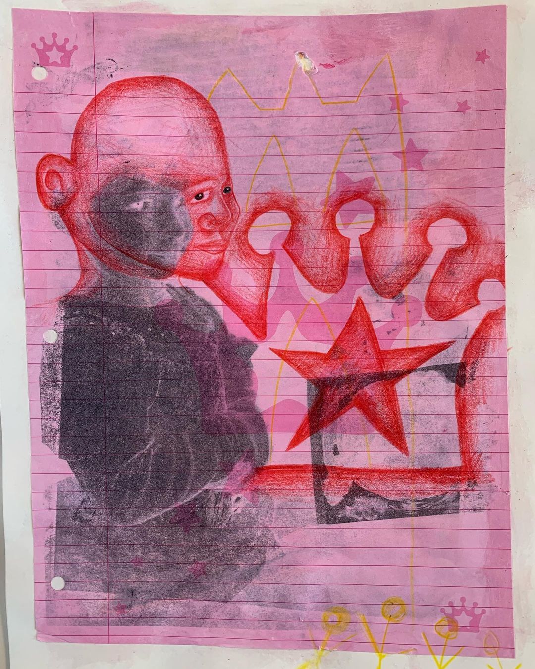 The thing that once held me colored pencil, collage, monoprint, and handmade stamps on paper