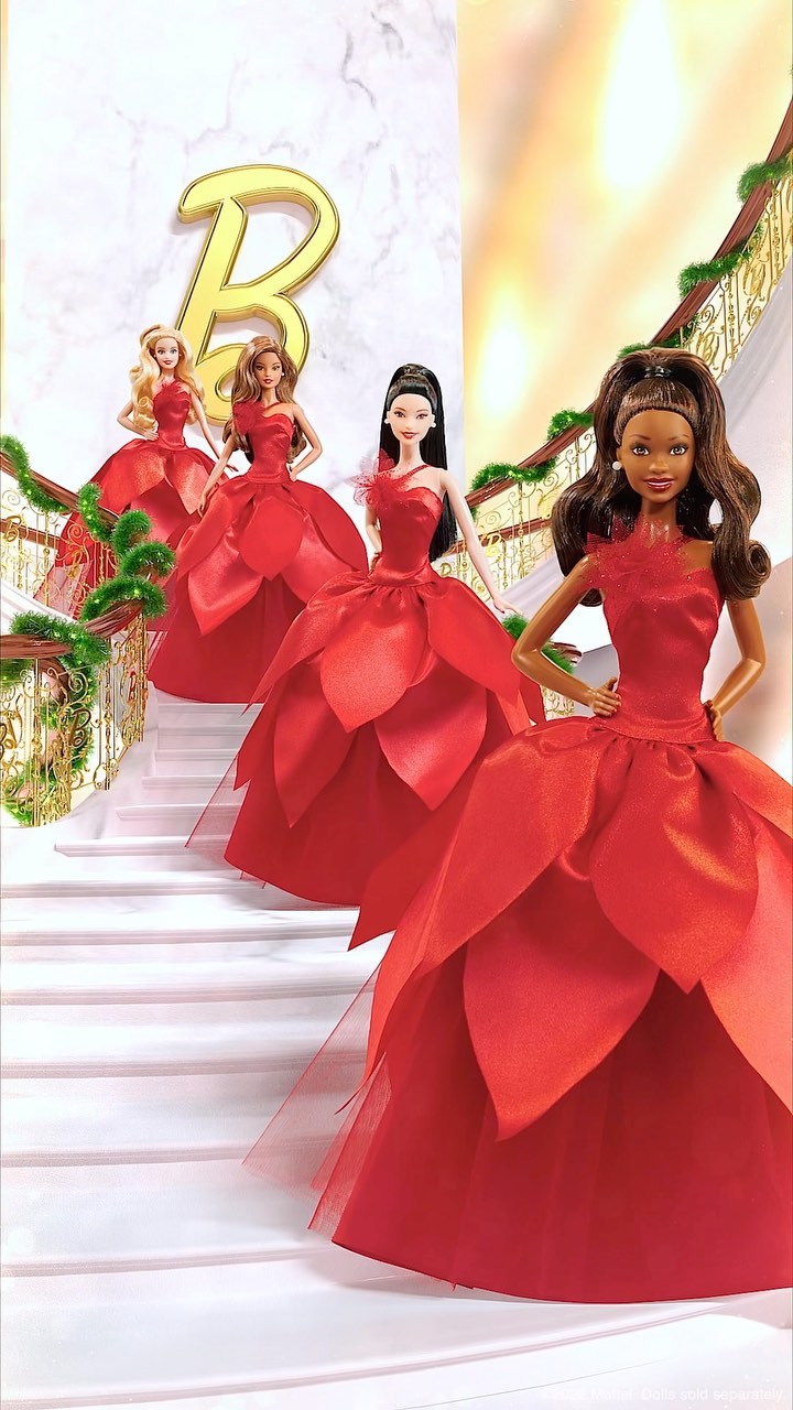 Ring in the season with elegance and style 💃🎁 The 2022 Holiday #Barbie doll wears a poinsettia-inspired gown, pearl earrings, and more glamorous touches for this time of giving and gatherings.
