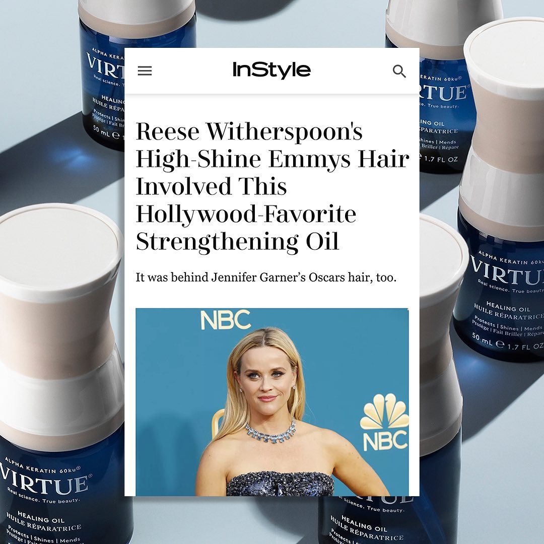 The incredible @lonavigi created Reese’s Emmy night look, and @instylemagazine is sharing the deets: “Lona Vigi used an impressive mix of the brand's best-selling 6-in-1 Styler and the Volumizing Primer on Witherspoon's signature blonde locks. But the hero product that gave her hair that enviable shine was the Garner-approved Healing Oil that seems to be a red carpet favorite — and for good reason.” ✨Spend $50+ on virtuelabs.com and receive our beloved Healing Oil as our gift to you, and your hair✨