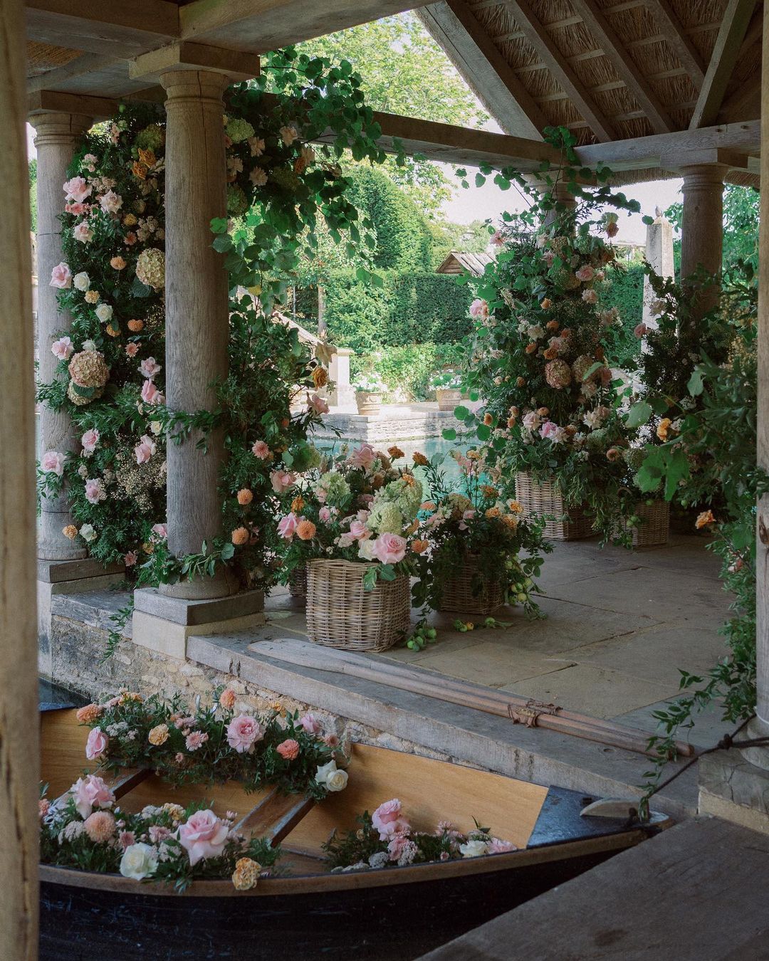 Imagine saying your vows under this beautiful floral heaven of a boat house surrounded by quaint English countryside and your favourite people.