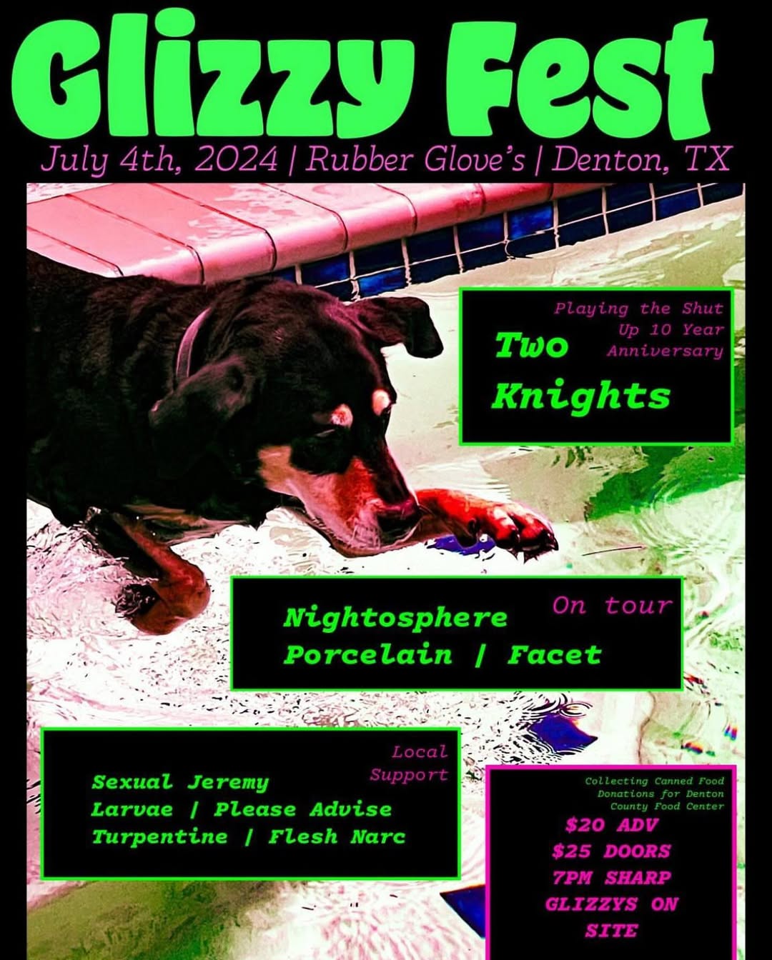 Glizzy Fest this week! For those that missed it, @twoknights will be making up their 10 year anniversary gig with us, as well as a few other changes to the bill! Come hang and gobble some glizzies with the rest of Denton!
