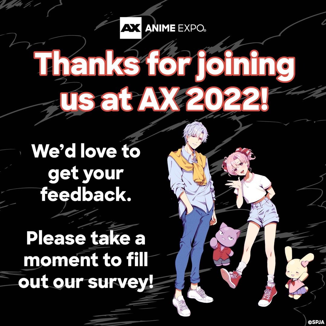 Thank you for joining us at Anime Expo 2022! We'd love to get your feedback, please take a moment to fill out our survey. https://survey.anime-expo.org/zs/SfzUh7