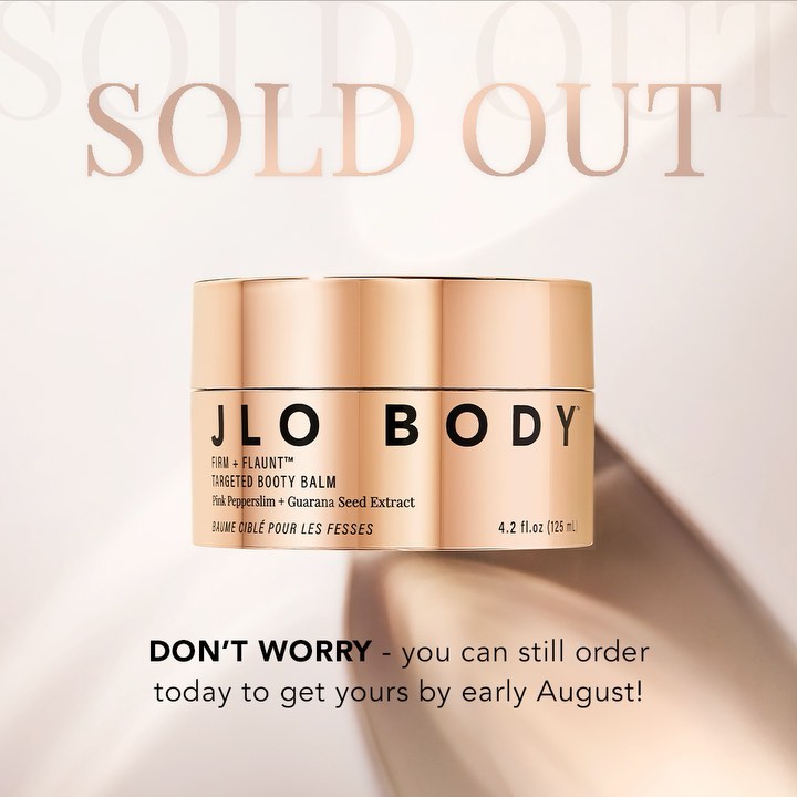Don’t worry — if you didn’t get our Booty Balm on the first drop, you can still order yours and it will ship early August 🤍 JLoBeauty.com, link in bio. #JLoBody