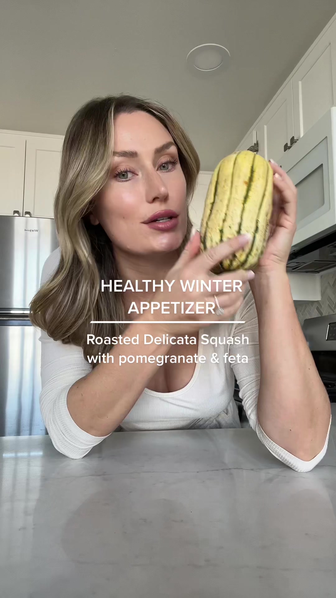 Roasted (or airfried!) delicata squash with feta, pomegranate and pine nuts 🤠such a easy and delicious appetizer or side dish!! #thanksgivingrecipes #winterrecipes #delicatasquash #roastedsquash #healthyrecipes #healthyappetizer #healthyfood #vegetariansidedish